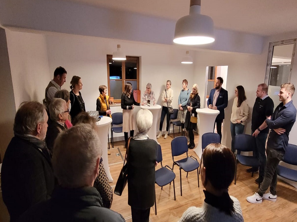Im neu gestalteten Seminarraum im Erdgeschoß, der zukünftig für Veranstaltungen gemietet werden kann, war Gelegenheit, die Harburger Kunst-Aktivitäten von 2022 Revue passieren zu lassen, aber auch um über Projekte für 2023 und 2024 nachzudenken. „Wir freuen uns, dass wir uns die Räumlichkeiten anschauen können, bevor sie im März offiziell eröffnet werden“, so Doris Thürheimer, Leiterin des Bildungswerkes.