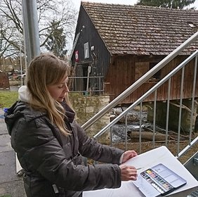 Mit dem Gedicht „Die klägliche Leistung der Frau“ von Mascha Kalénko und einigen unerfreulichen Fakten zur immer noch kritischen Stellung der Frau im Kunstbetrieb begann der Malnachmittag, zu dem das Bildungswerk Harburg anlässlich des Internationalen Frauentages am 8. März eingeladen hatte. Die Organisatorinnen haben sich zum Ziel gesetzt, den Malerinnen Orte mit ungewöhnlichen Perspektiven anzubieten. In diesem Jahr hatten sie sich auf der sogenannten „Dollmann-Insel“ eingefunden, die genau die Vorgaben erfüllt „mitten in der Stadt und doch in einer anderen Welt“. Motive und Perspektiven gab es denn auch genug. Allerdings musste das Malen wegen Regens abgebrochen werden. Die Frauen ließen sich aber vom Wettergott die Laune nicht verderben und nutzten den Nachmittag für gemeinsame Gespräche bei Kaffee und Kuchen. Ein großer Dank ging an die Familie Dollmann, die anbot, das Malen bei besserem Wetter nachzuholen.